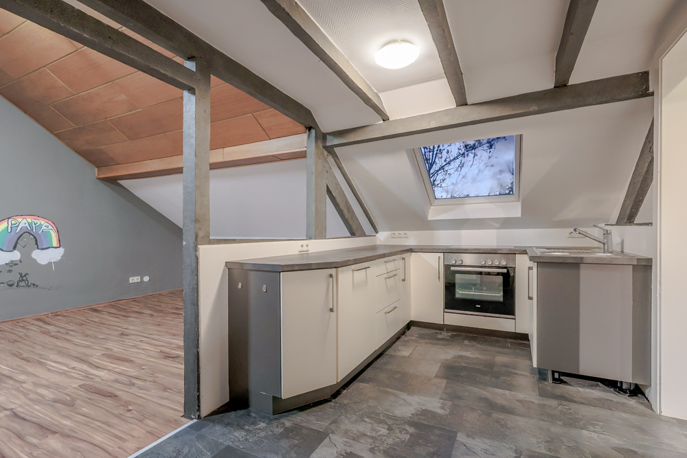 Im Dachgeschoss befindet sich eine 2-Zimmer-Wohnung mit offener Küche und zeitgemäßem Badezimmer. Hinsichtlich der Ausstattung und des Zustands dieser Wohnung steht einer kurzfristigen Vermietung nichts im Wege.