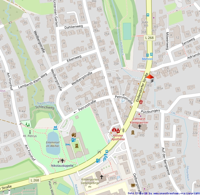 Ideal ist insbesondere die Nähe zu Bonn sowie zum Rheintal. Fürs Bummeln und Schlendern bietet sich dann die Königswinterer Altstadt selbst an, das Sie über die L268, die am malerischen Kloster Heisterbach vorbeiführt, schnell erreichen. Darüber hinaus finden Sie übrigens auch zahlreiche Wander- und Radwege durchs herrliche Siebengebirge, das direkt vor Ihrer Haustür liegt. Was wollen Sie mehr?