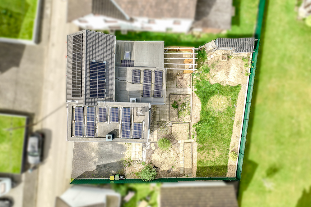 Beheizt wird die Immobilie über eine Gasheizung aus dem Jahr 2021. Zusätzlich ist auf den Dachflächen eine umfangreiche Photovoltaikanlage installiert, die durch eine Speicherlösung ergänzt wird und eine effiziente Eigenstromnutzung ermöglicht. Zwei Stellplätze im Außenbereich runden das Angebot ab.