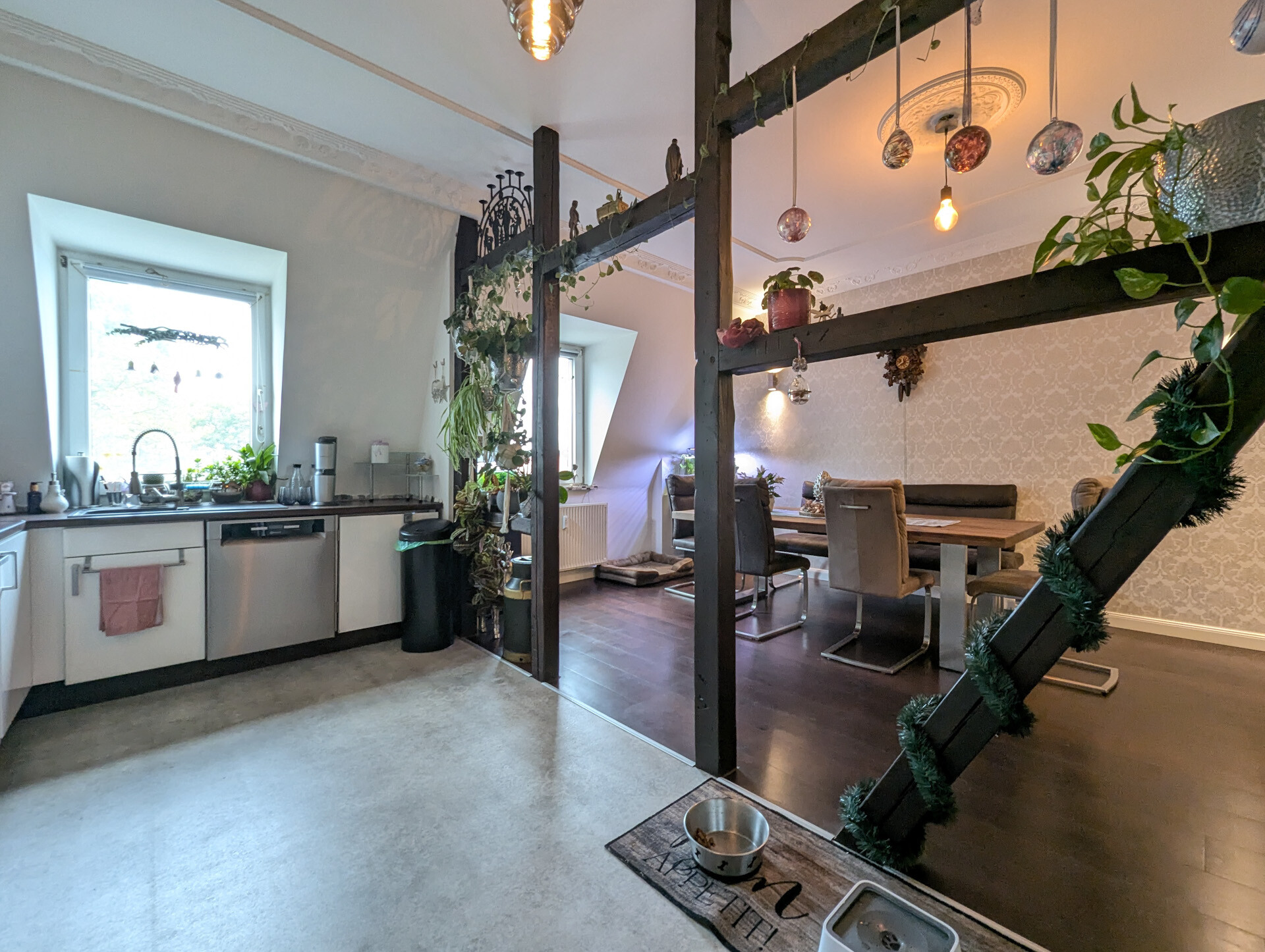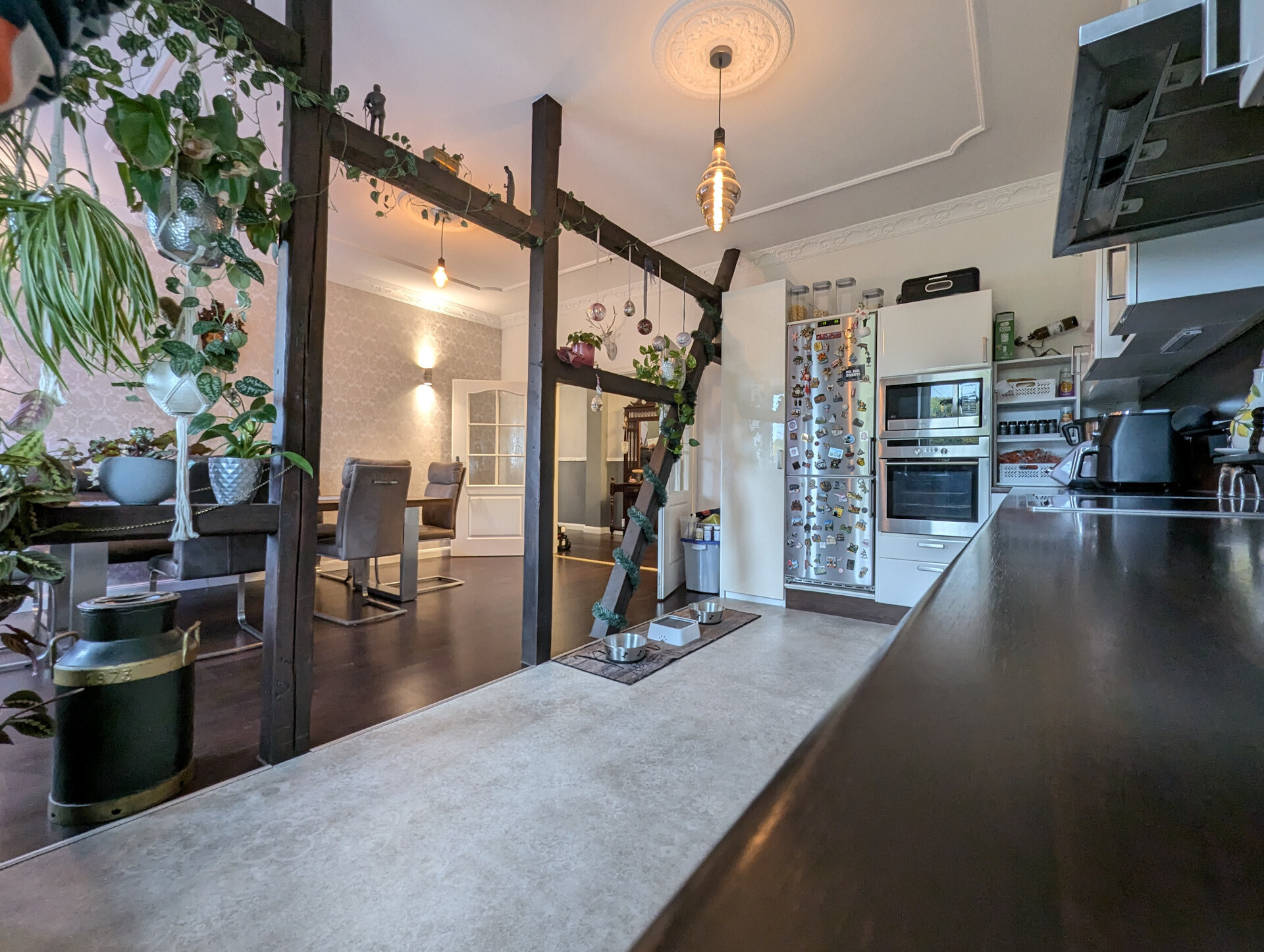Diese Wohnung verbindet historische Elemente mit modernen Annehmlichkeiten und schafft so ein Wohngefühl der besonderen Art.