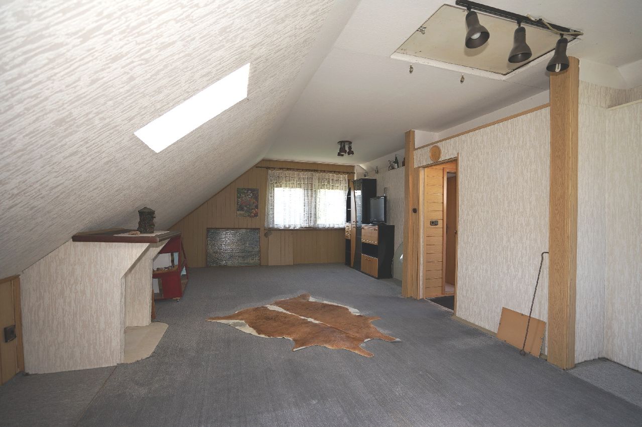 Im Obergeschoss stehen 3 Schlafräume sowie das Tageslichtbad mit Dusche zur Verfügung. Die Innentreppe führt in das wohnlich bereits ausgebaute Dachgeschoss (ca. 32 m² sind in der Wohnfläche nicht enthalten!).
