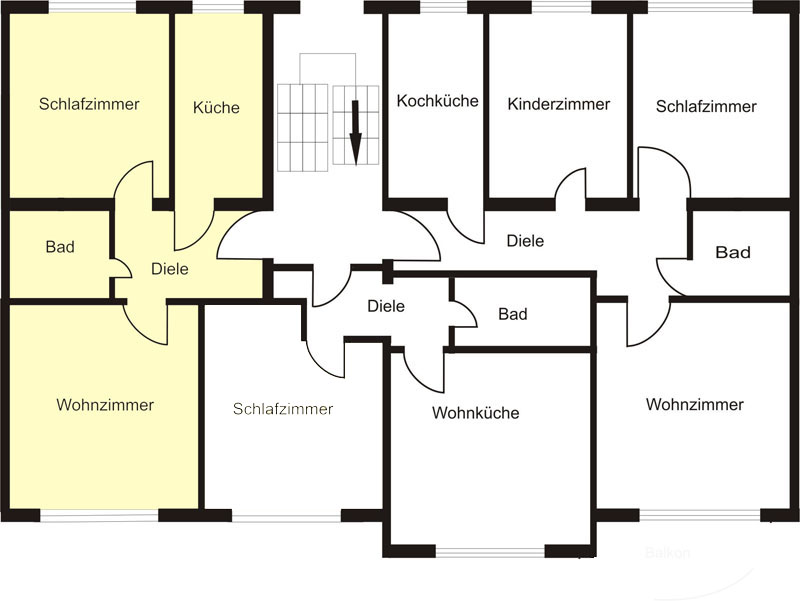 2.OG rechts: ca. 47m², 2 Zimmer mit Küche.