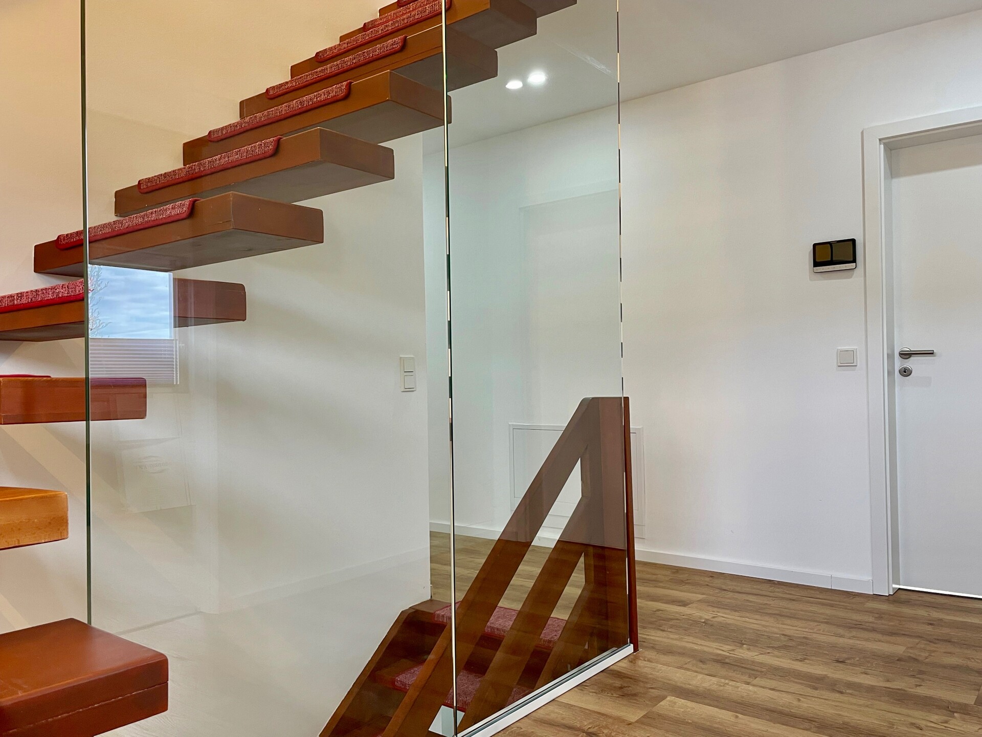 Einziehen und wohlfühlen! Dieses toll gestaltete Einfamilienhaus, erbaut im Jahr 1978 und 2024/25 umfassend kernsaniert, befindet sich auf einem ca. 476 m² großen Grundstück. Die ca. 185 m² Wohn- und Nutzfläche verteilen sich auf drei Ebenen und bieten viel Platz und Komfort für die ganze Familie. Der Eingangsbereich liegt im Kellergeschoss. Hier befinden sich neben Heizungs-, Lagerraum und Garage auch ein Bad und zwei weitere schöne Zimmer für Kinder oder Gäste. Über eine Treppe erreichen Sie den modernen Wohn-/Essbereich der Immobilie mit direktem Zugang in den Garten. Auf der gleichen Ebene befinden sich die offene Küche, zwei Zimmer und ein weiteres Bad mit Dusche. Das Highlight im Dachgeschoss ist ein großer Studio-Raum sowie ein separat abgetrenntes großes Zimmer. Hier kann ein Homeoffice und ein abgetrenntes Schlafzimmer geplant werden.