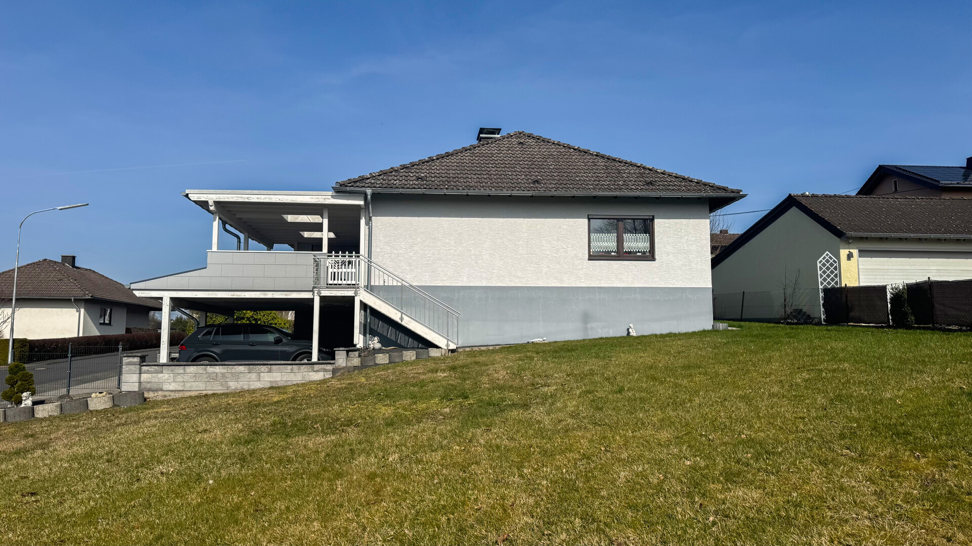 Mit einer Wohnfläche von ca. 108 m² bietet das Haus ausreichend Platz für komfortables Wohnen. Die Immobilie verfügt über insgesamt 4 Zimmer, darunter 2 Schlafzimmer und ein modernisiertes Badezimmer, das zwischen 2017 und 2019 erneuert wurde. Der Wohnbereich ist mit hochwertigen Parkett- und Fliesenböden ausgestattet. Die neue Terrasse mit Überdachung und integrierten Lichtkuppeln lädt zum Entspannen ein und ermöglicht einen schönen Blick in die Ferne. Das Grundstück wurde vollständig überarbeitet: Die Zufahrt aus Verbundsteinen sowie die Gehwege wurden zwischen 2018 und 2019 erneuert. Ein elegantes, handgefertigtes Edelstahlgeländer ziert die Gartentreppe. Der Zugang wird durch ein Doppelcarport, das 2018 neu errichtet wurde, komfortabel ergänzt. Diese Immobilie steht ab sofort zur Verfügung und bietet ein ideales Zuhause für Familien, die Wert auf Qualität und eine ruhige Wohnlage legen.