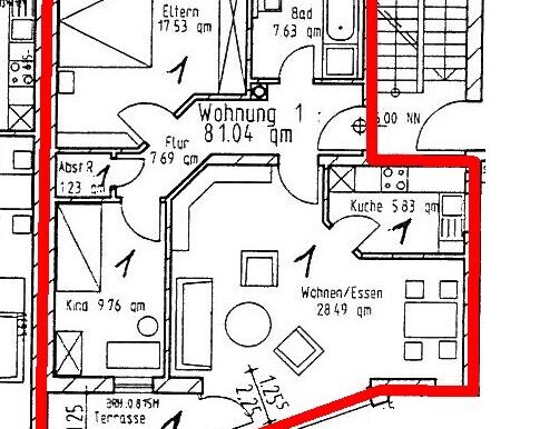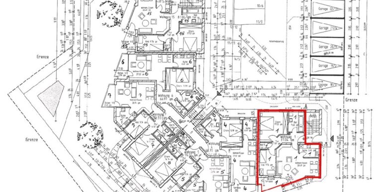 Die Wohnung ist aufgeteilt in Wohn-/Esszimmer, Schlafzimmer, Kinderzimmer, Küche, Bad mit Dusche und Wanne, Abstellraum. Ein Kellerraum und eine Garage gehört ebenfalls zur Wohnung.