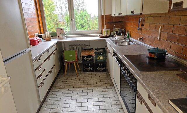 Zu dieser Wohnung gehört eine Einzelgarage. Die Durchfahrt zum Hof/Garagen ist mit einem elektrischen Tor gesichert. Ein Kellerraum und ein gemeinschaftlicher Wasch-Trockenraum stehen zur Verfügung. Kabelanschluss und Glasfaser sind im Haus. Gaszentralheizung mit Warmwasseraufbereitung aus 2004 (C), außentemperaturgeführt. Heizkörper und WW-Zähler wurden 2025 mit neuen Funkzählern ausgestattet. Das Flachdach ist wärmegedämmt.
