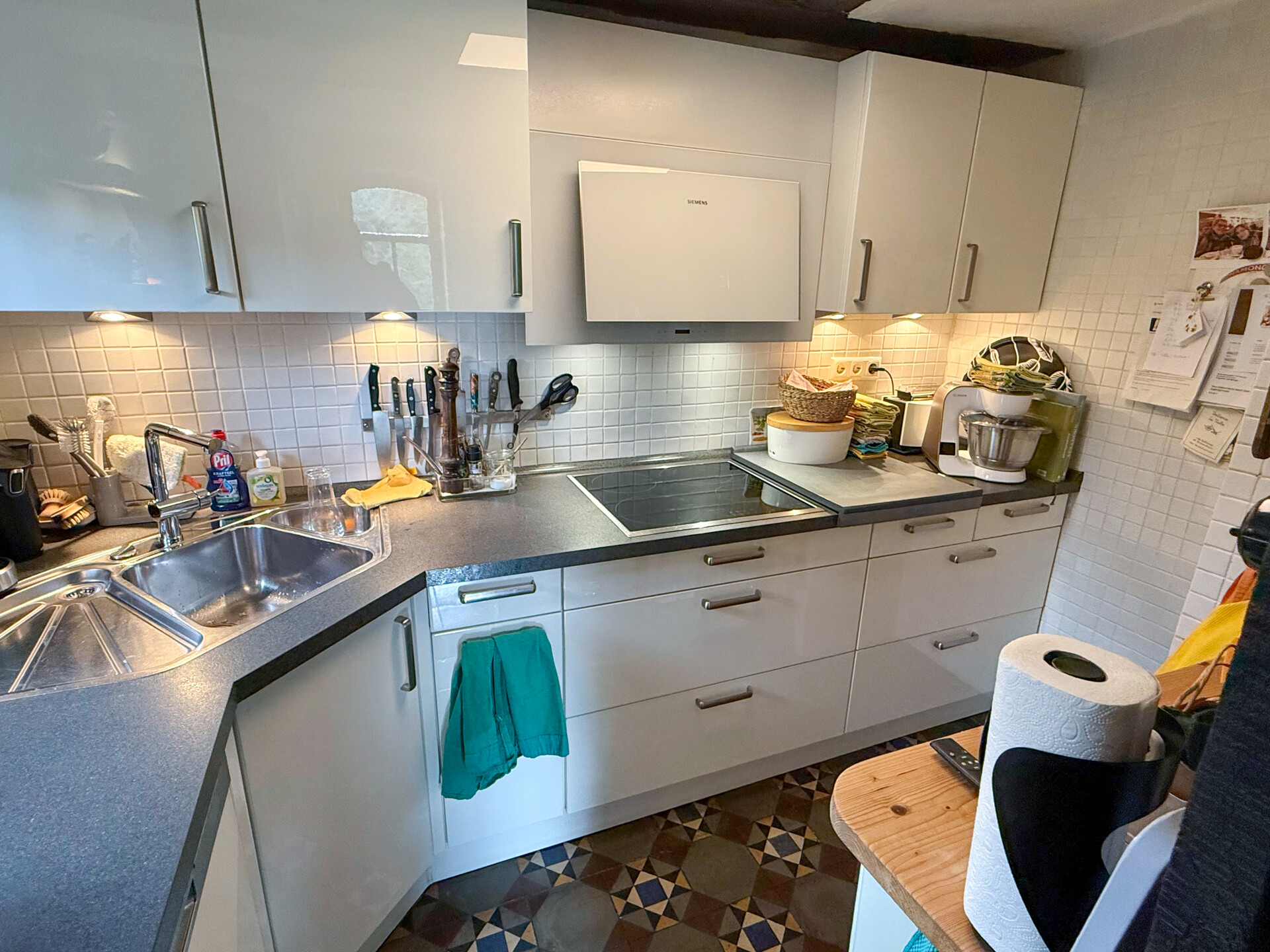 Dieses liebevoll modernisierte, ehemalige Fachwerkhaus mit Ursprung um 1800 vereint historischen Charme mit modernstem Wohnkomfort. Auf einem Grundstück von rd. 1.403 m² präsentiert sich das Anwesen – nach stetigen Sanierungen und Renovierungen von 1981 bis heute – in einem sehr guten Zustand! Im Erdgeschoss ist das Wohnen nahezu altersgerecht möglich: Neben dem gemütlichen Wohn-/Essbereich stehen eine hochwertig ausgestattete Küche, ein Wannenbad sowie ein Schlafzimmer oder Büro zur Verfügung. Im ersten Obergeschoss erwarten Sie ein eindrucksvolles Schlafzimmer mit Galerie, ein Kinderzimmer oder eine Ankleide, ein sep. WC sowie ein Wellness-/Saunaraum – perfekt für entspannte Stunden. Ein weiteres Zimmer befindet sich im Dachgeschoss. Insgesamt verfügt das Haupthaus über rd. 174 m² Wohnfläche. Ergänzt wird das Angebot durch vielfältige Nebennutzungen: Im Erdgeschoss der Scheune befinden sich Werkstatt, Heizung/Waschküche und ein Nebenraum, im Obergeschoss ein großzügiger Hobbyraum. Drei Kellerräume bieten zusätzlichen Stauraum. Zum Anwesen gehören außerdem ein Doppelcarport mit Wallbox und Abstellraum, ein Pavillon sowie das wunderschön angelegte Gartengrundstück – ein echtes Refugium, für alle, die Qualität und Gemütlichkeit schätzen!