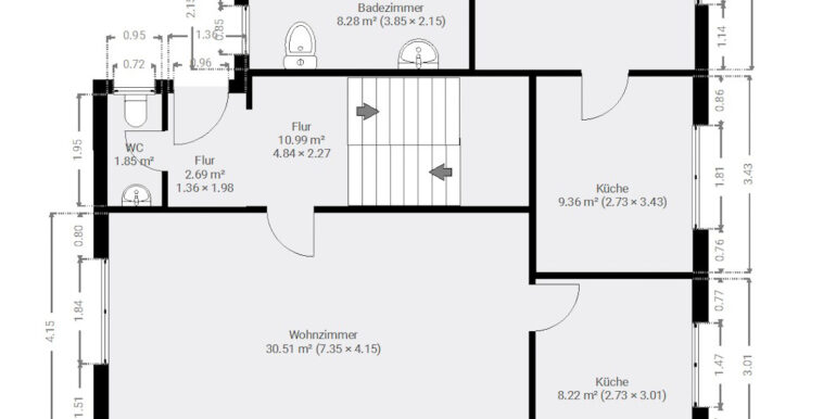 WE 2 (vermietet): 55,09 m²