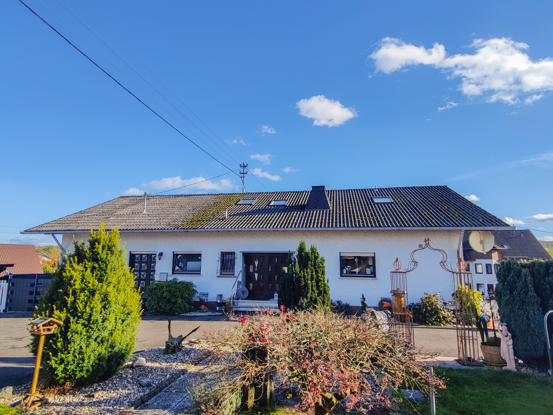 Das Objekt befindet sich in einem gewachsenen Wohngebiet am Stadtrand von Altenkirchen. Die bevorzugte Wohngegend bietet ideale Voraussetzungen zur schnellen Neuvermietung bei einem Mieterwechsel. Auf dem Grundstück wurden zahlreiche Nebengebäude errichtet, die als Garagen oder Lagerplätze dienen. Am unteren Grundstücksrand wurde eine Hecke als Sichtschutz gepflanzt und ein kleiner Garten angelegt. Vor dem Haus wurde die Zufahrt zu den Garagen gepflastert. Oberhalb des Hauses wurde die Zufahrt geteert.