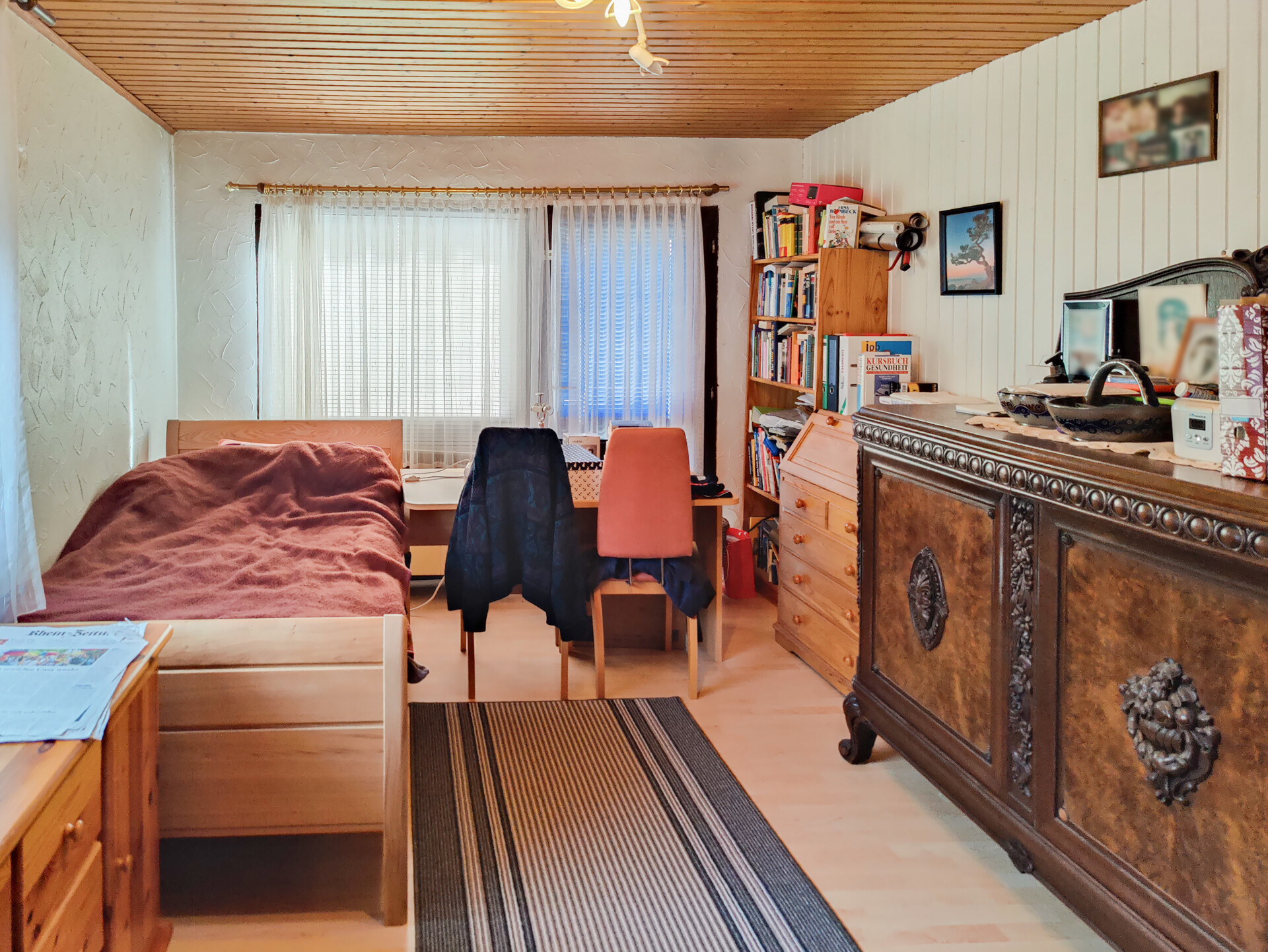 Die Fenster sind größtenteils aus Holz und stammen noch aus dem Baujahr des Hauses. In der Dachgeschosswohnung wurden jedoch 2021 neue Kunststofffenster eingebaut. Alle Fenster verfügen über eine Isolierverglasung und größtenteils auch über manuelle Rollläden.