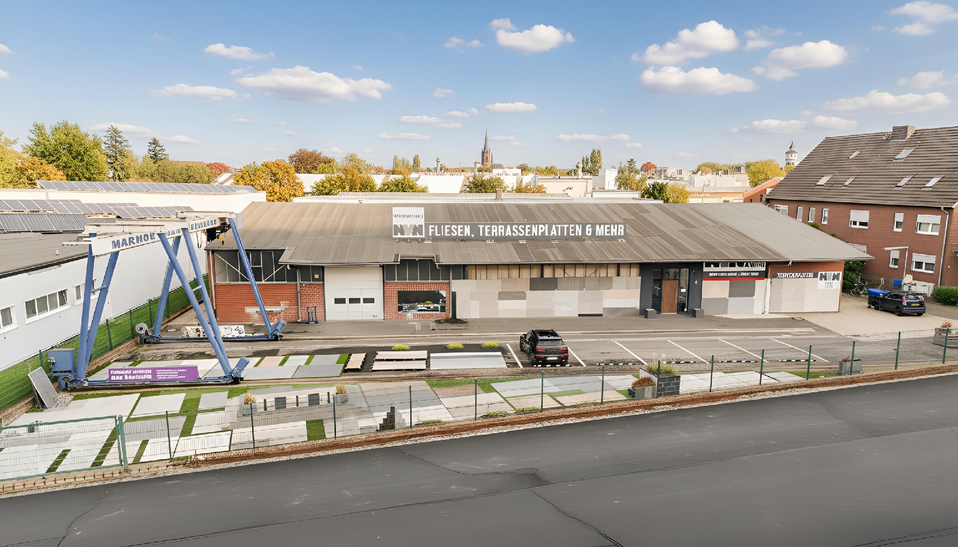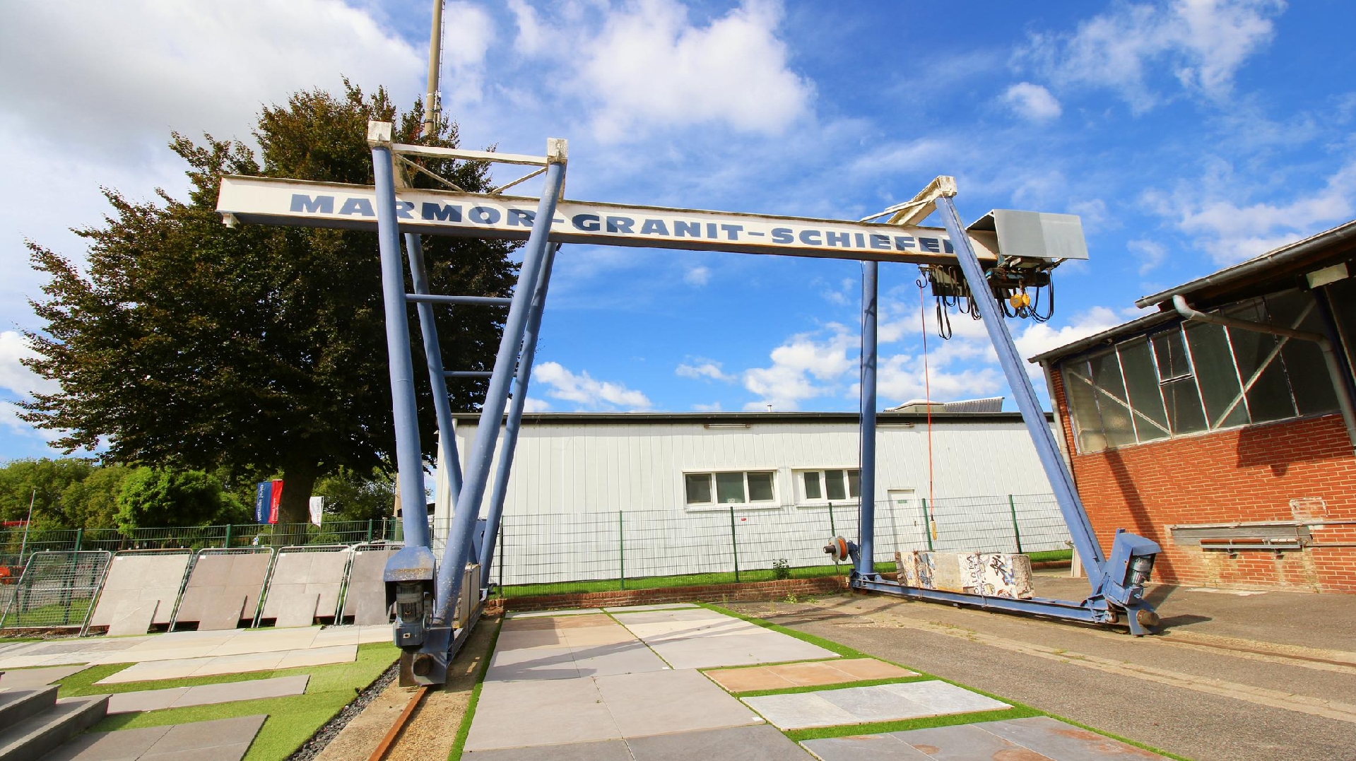 Für effiziente Abläufe gehört ein Kran zum Objekt und erleichtert Anlieferung, Materialumschlag und innerbetriebliches Handling.