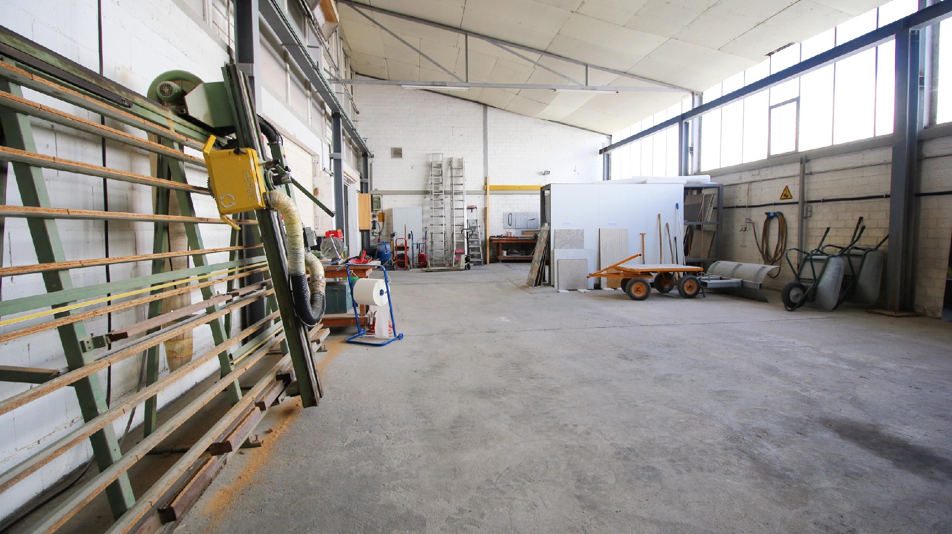 Von hier gelangen Sie nahtlos in zwei Hallen. Halle 1 war für den Wasserstrahlbetrieb vorgesehen, Halle 2 unterstützt Fertigung und Kommissionierung.
