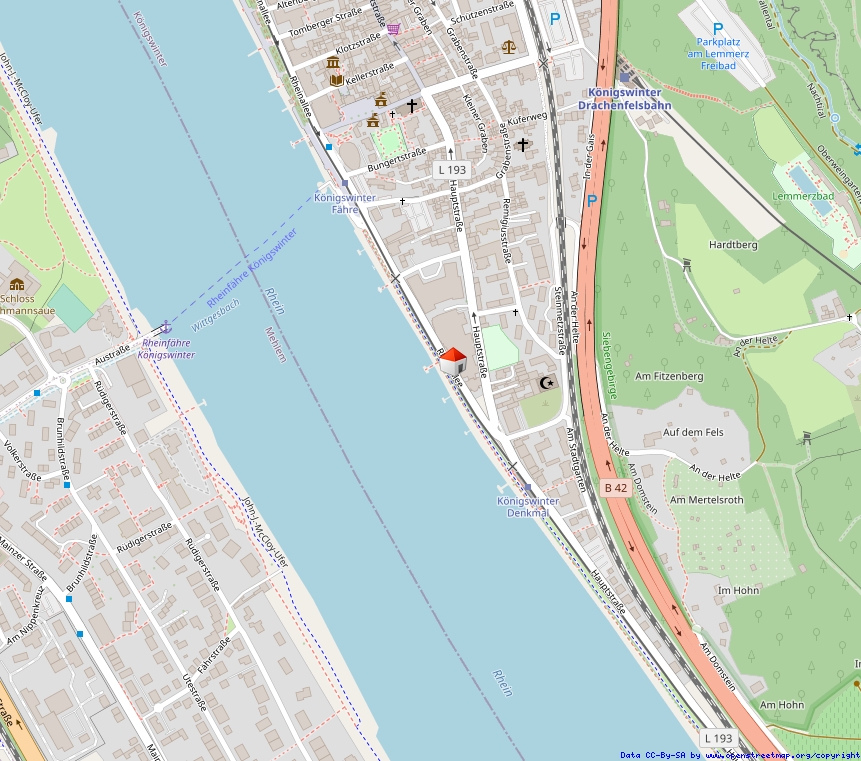 Die Immobilie liegt in direkter Rheinlage an der Rheinallee in Königswinter. Die Lage zeichnet sich insbesondere durch den unmittelbaren Bezug zum Rhein und die freie Sicht auf das Wasser aus.