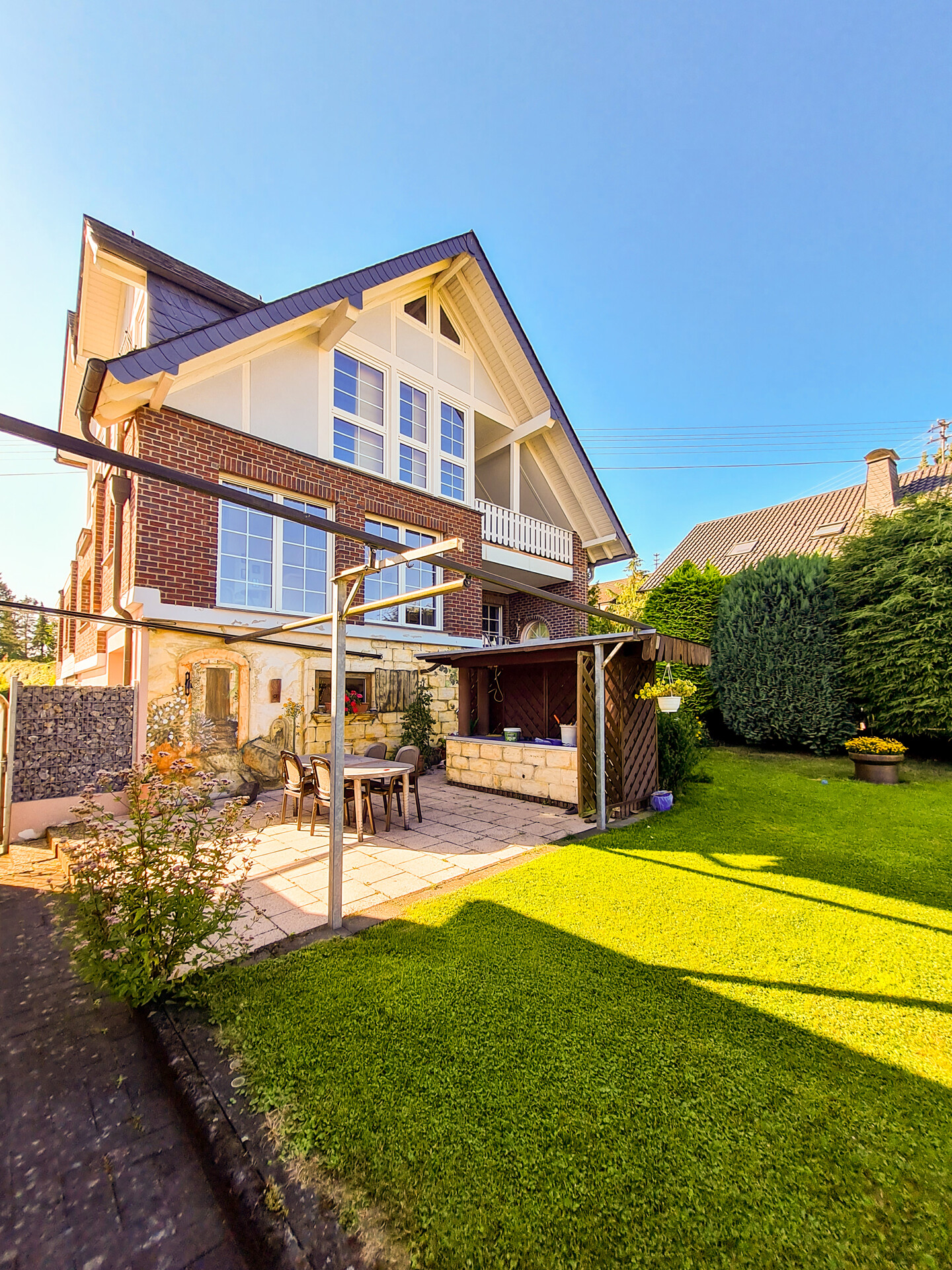 Zum Verkauf steht ein geräumiges, sehr gepflegtes Ein.-/Zweifamilienhaus mit 3 Garagen und einer kleinen Halle. Das Objekt wurde ca. 1957 in solider, massiver Bauweise errichtet. Anbau 1 erfolgte ca. 1968 und der 2. Anbau ca. 2000. Die Wohnfläche von ca. 340 m² teilt sich, wie folgt, auf: Erdgeschoss ca. 180 m² und Obergeschoss ca. 160 m². Zudem ist die Immobilie unterkellert, dort befinden sich auch die 3 Garagen. Neben dem Haus wurde eine Halle von ca. 170 m² und einem Nebenraum von 26m² errichtet. Aufgrund des großen Innenhofs sind dort einige Stellplätze vorhanden. Das Grundstück von ca. 1.320 m² ist im hinteren Gartenbereich pflegeleicht mit Beeten und kleinen Nebengebäuden angelegt. Dort befindet sich auch eine gemütliche, große Terrasse.