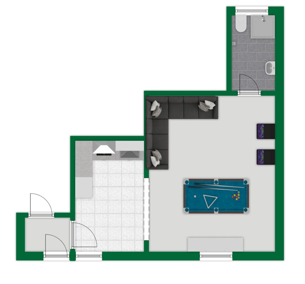 Das Untergeschoss bietet vielseitige Möglichkeiten und ergänzt die Wohnfläche um praktische und flexibel nutzbare Räume. Über einen separaten Eingang erreichbar, stehen hier zwei großzügige Hobbyräume und ein Badezimmer mit einer Gesamtfläche von 35 m² zur Verfügung. Auch Küchenanschlüsse sind gegeben. Diese Räume eignen sich ideal als Werkstatt, Fitnessraum, Lagerfläche oder für kreative Hobbys. Aktuell ist dieser Bereich nicht zu Wohnzwecken genehmigt, weshalb sich die 121,28 m² Wohnfläche lediglich auf das Erd- und Obergeschoss beziehen.