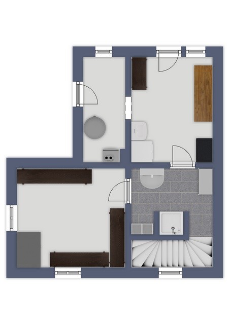 – Eine funktionale Küche ist im Obergeschoss vorhanden,
