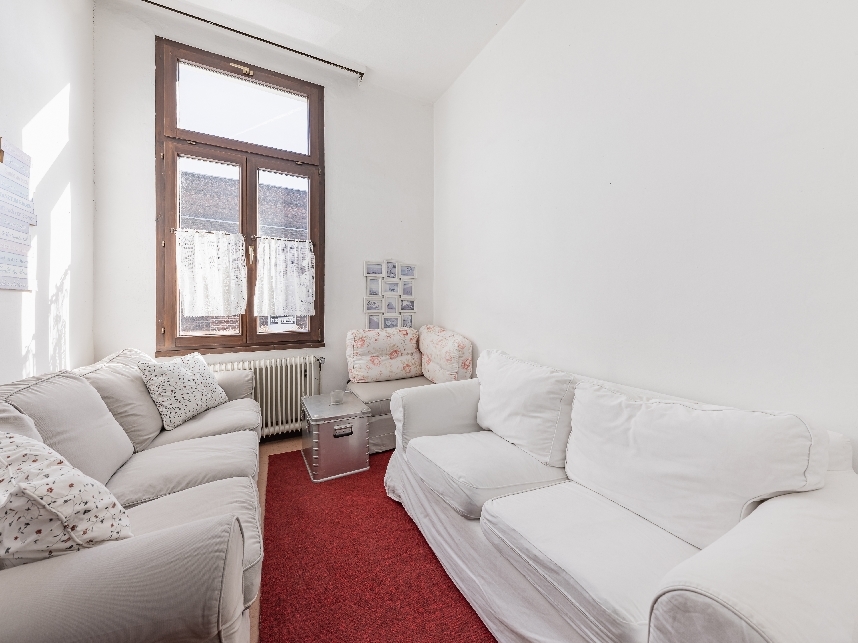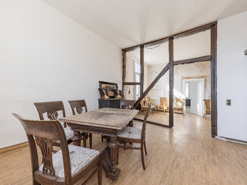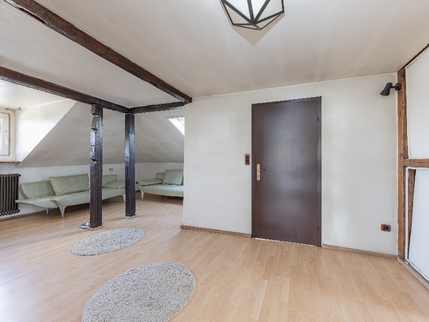 In den oberen Etagen befinden sich drei separate Wohneinheiten (2-, 3- und 5-Zimmer-Wohnung) mit jeweils Wohnküche, Diele und Bad.