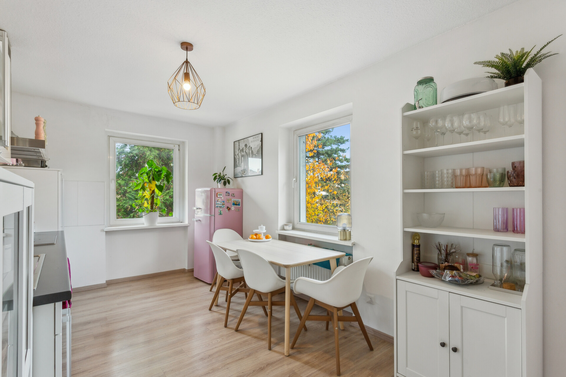 Die Wohnungen im Erd- und Obergeschoss sind identisch geschnittene, großzügige 4-Zimmer-Wohnungen. Jede Einheit verfügt über ein Tageslicht-Gäste-WC sowie ein modernes Badezimmer mit Dusche, welches ebenso mit einem Tageslichtfenster ausgestattet ist. Das Badezimmer im 1. Obergeschoss wurde zudem 2023 modernisiert. Die helle Küche bietet einen schönen Blick ins Grüne und lädt zum Verweilen ein.